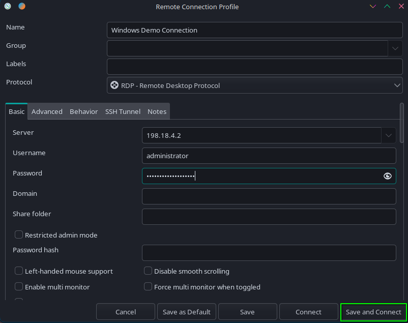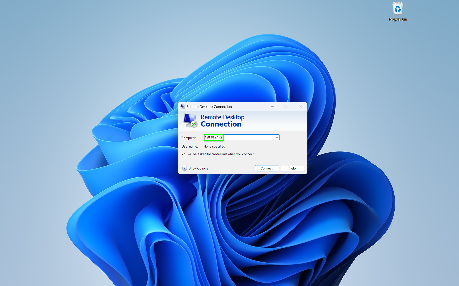 Computer:field, enter in the IP address of you noted in step 2, and pressConnect.