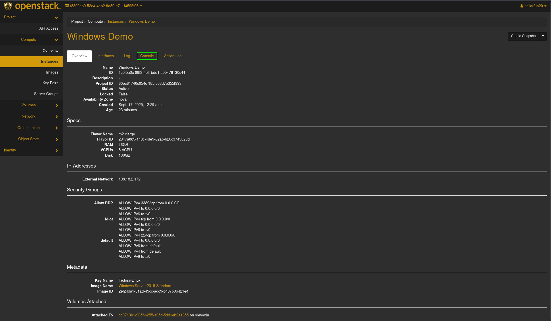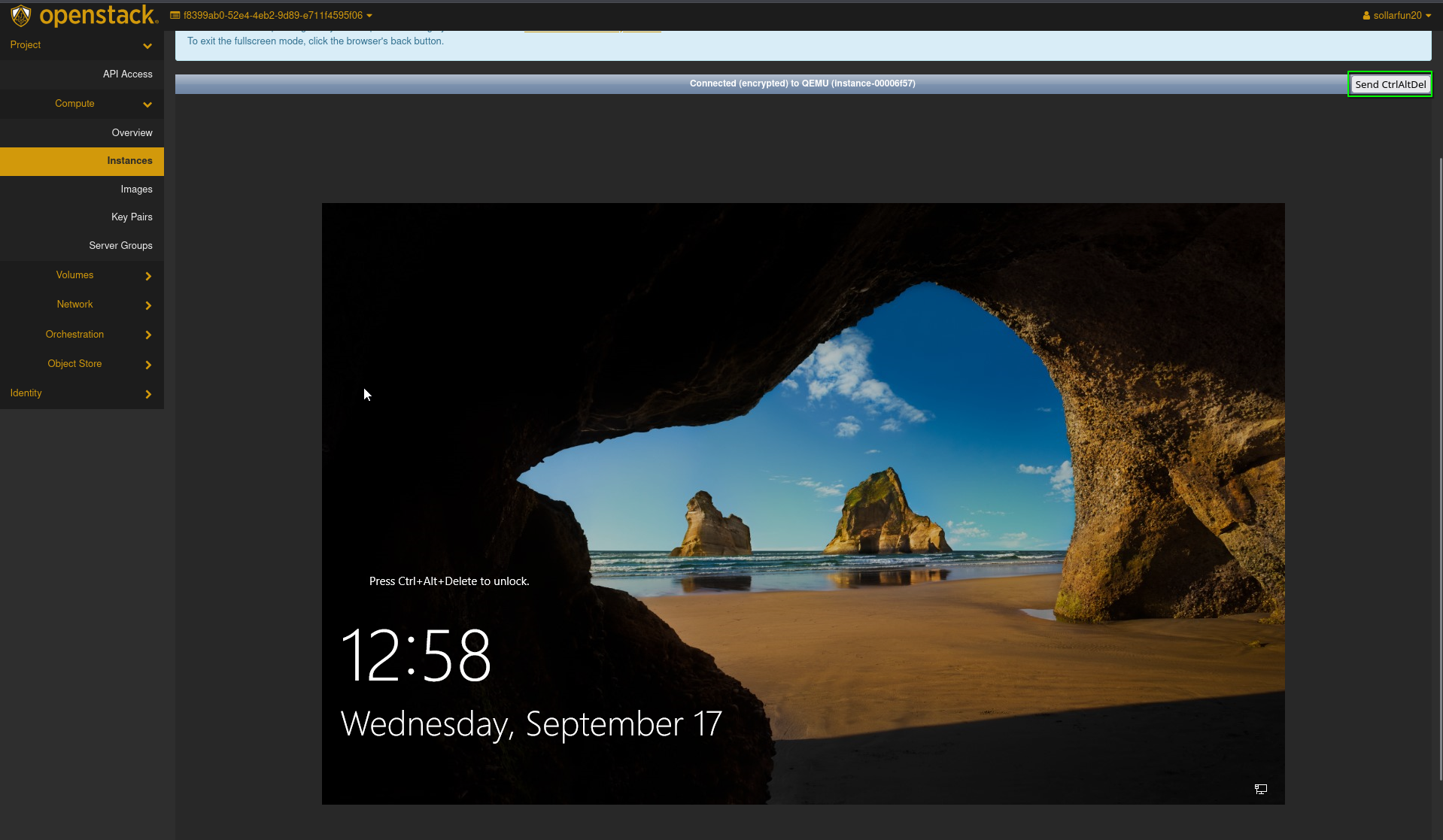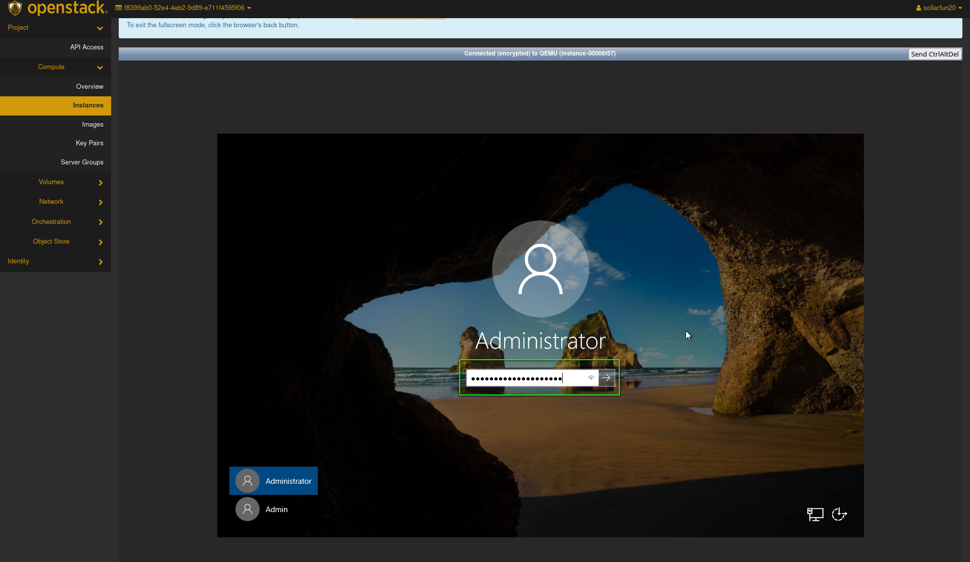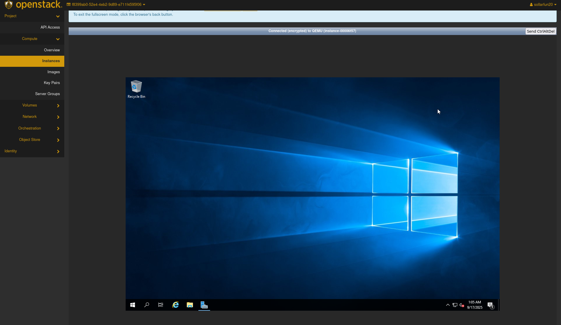 - You may now access the instance through the openstack console normally as you would any other windows device.