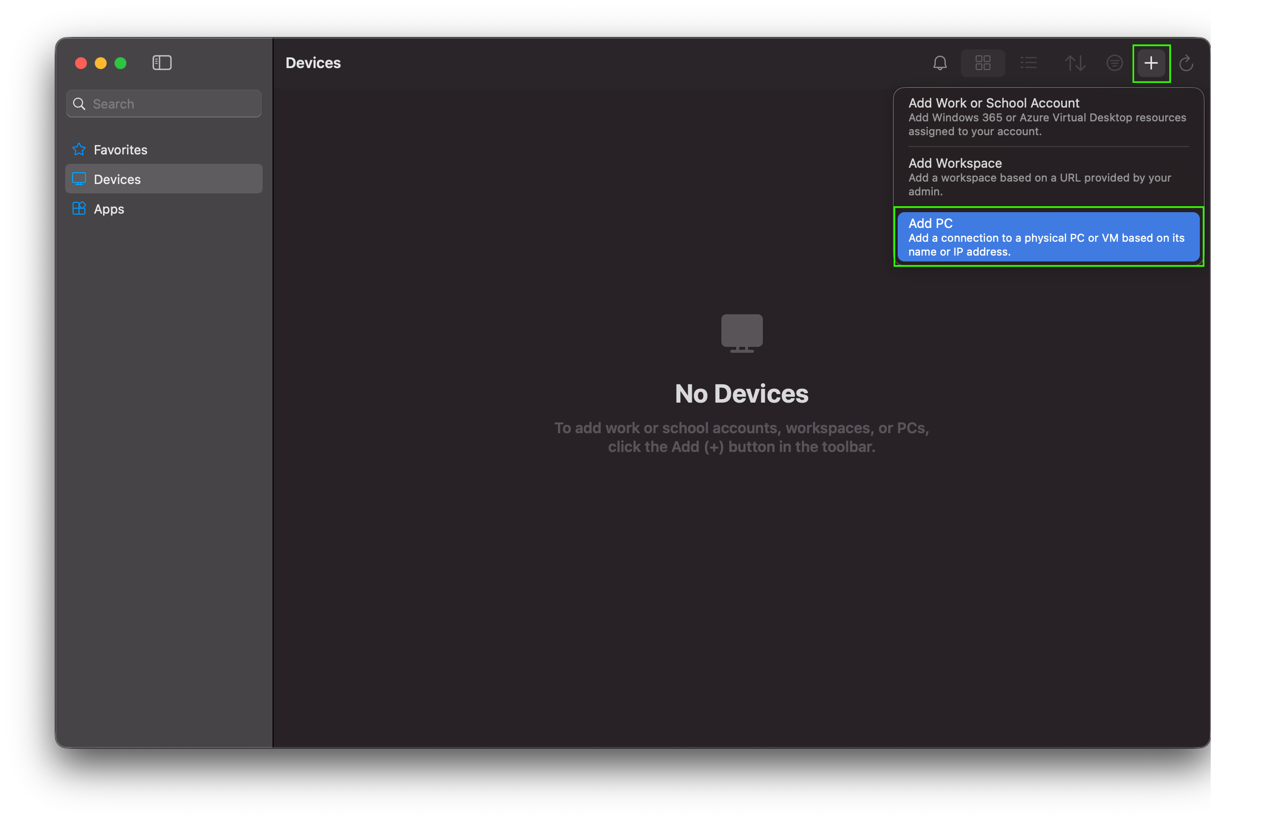 +botton in the top right color and then selectAdd PC.