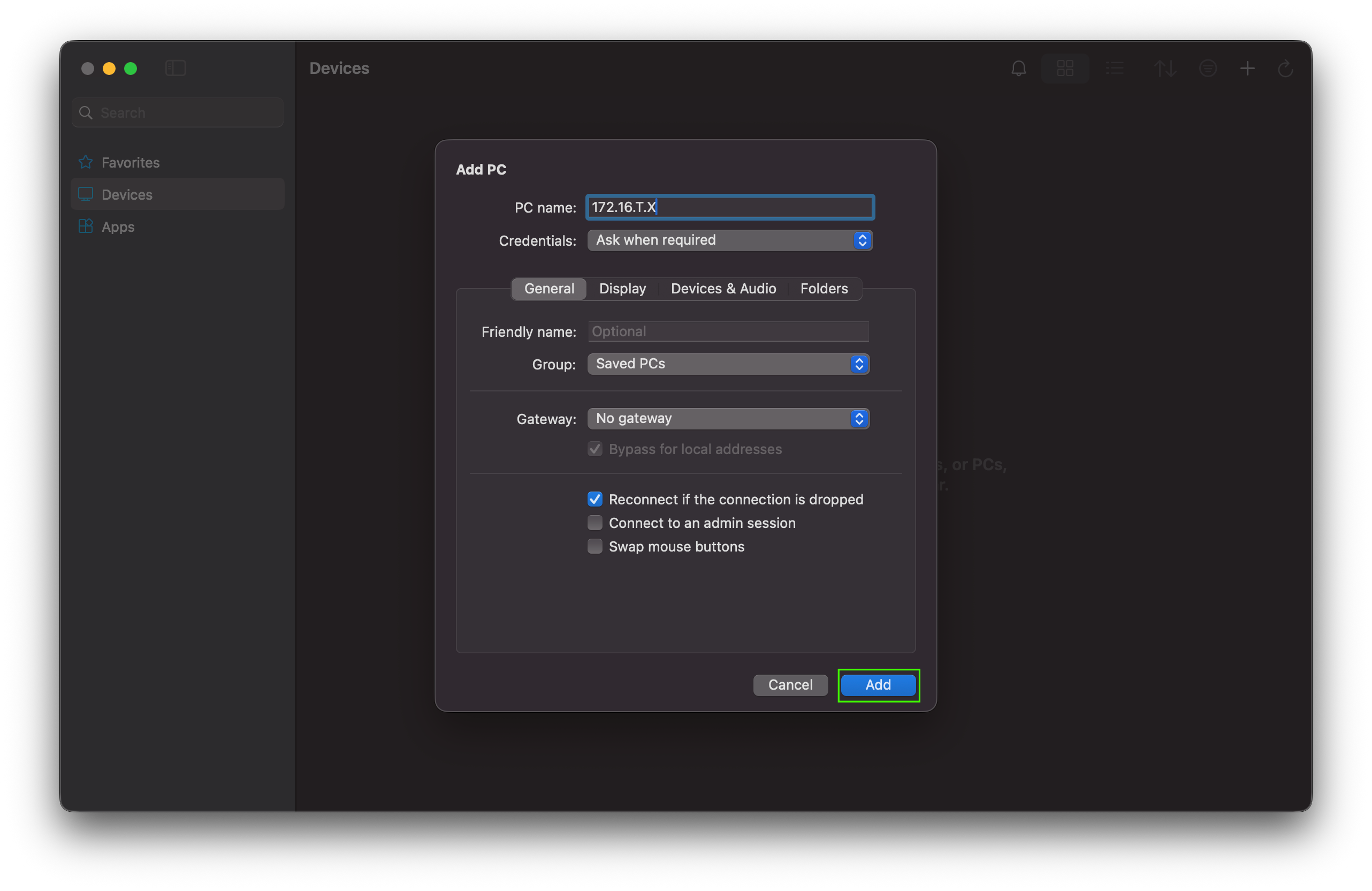 RDPRule in the Rule dropdown, leave all other options as default and clickAdd