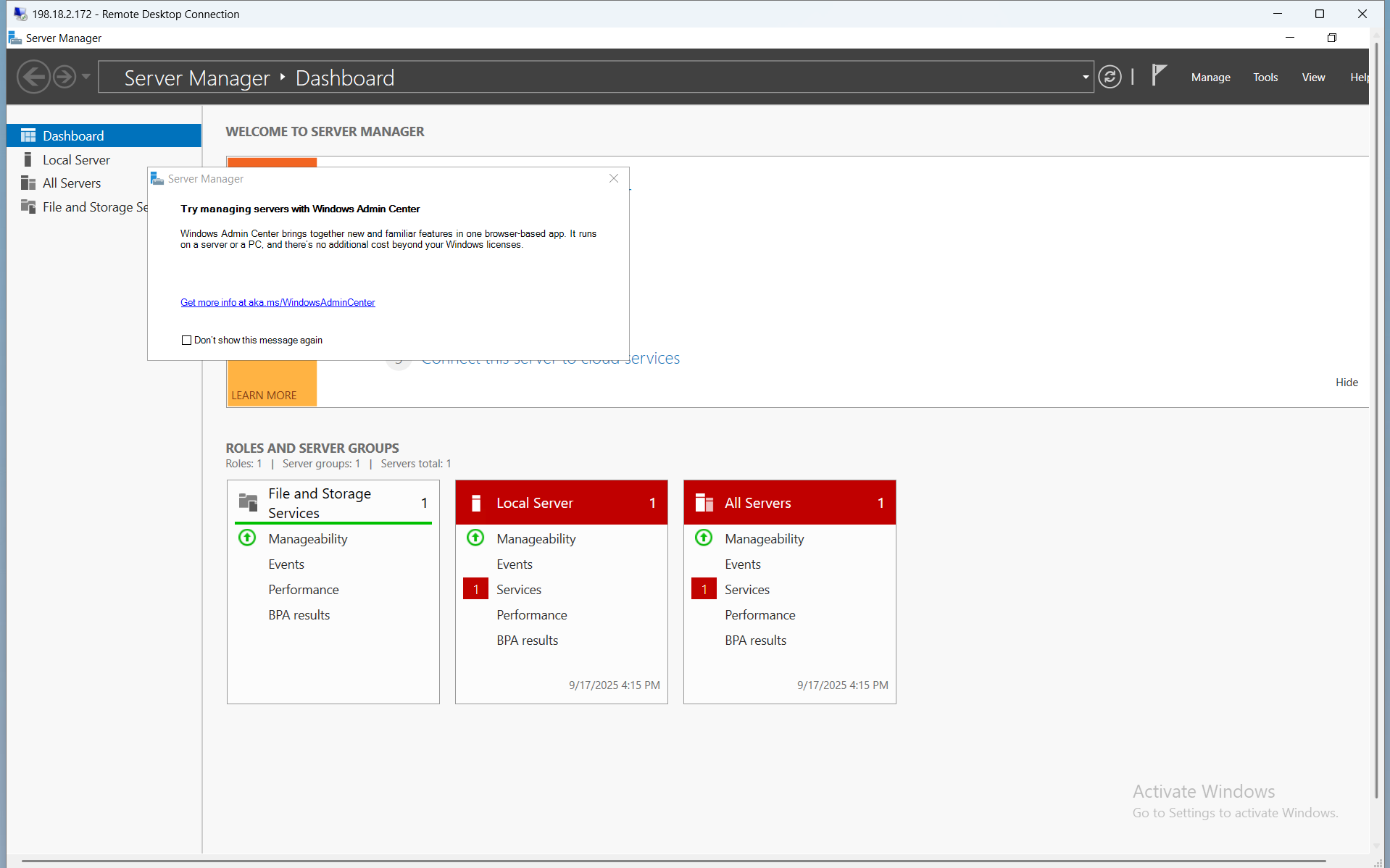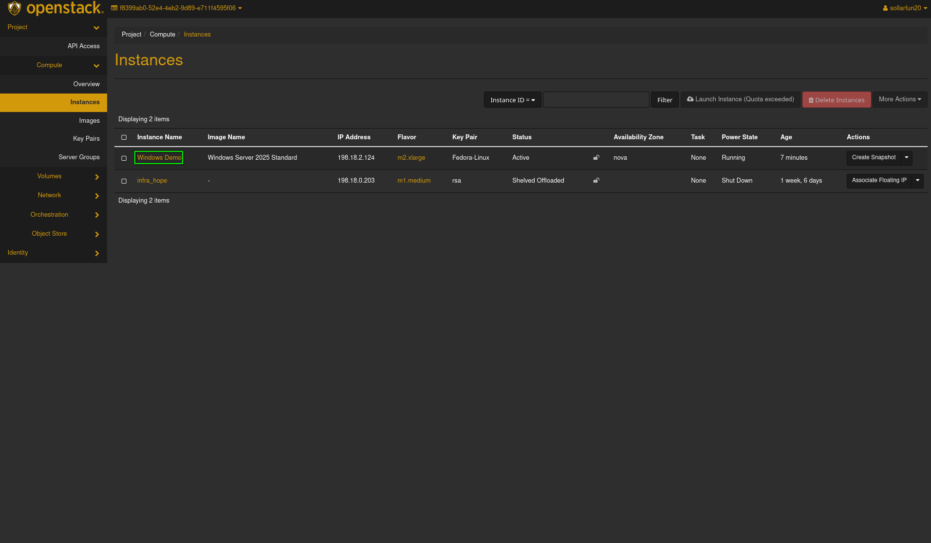 - A newly created Windows Server Instance on Openstack