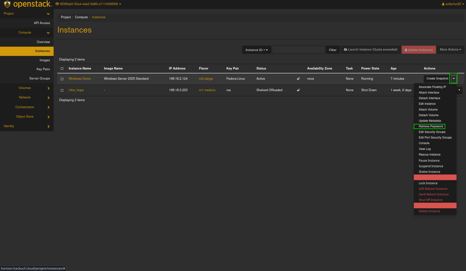 horizon.hackucf.cloudand log into your account - Click on
