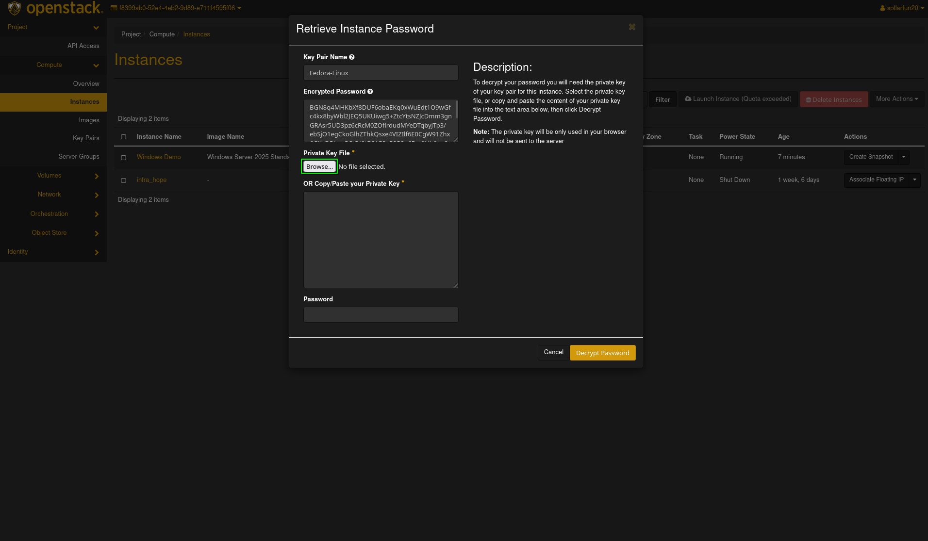 - Locate the instance you want to retrive the password from