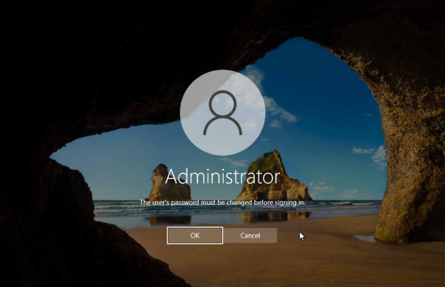 Head over to the console and send a ctrl+alt+delete to the server by pressing the Send CtrlAltDelete button in the upper right hand corner.The Console will receive you with a message “The user's password must be changed before signing in”.
