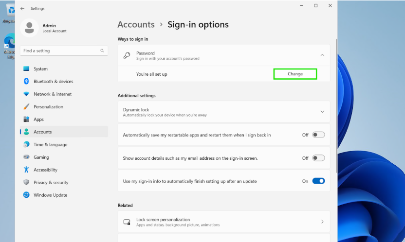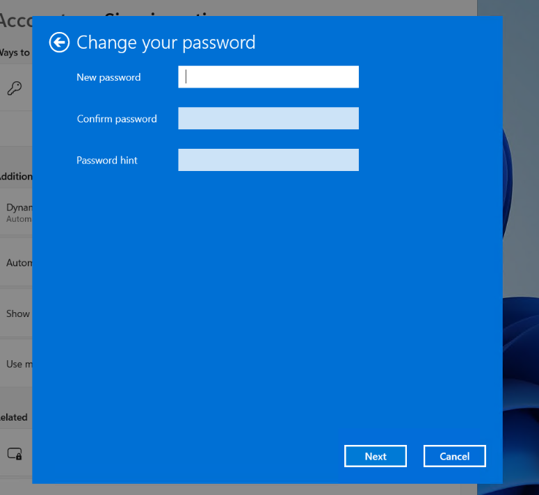 Setting a new password