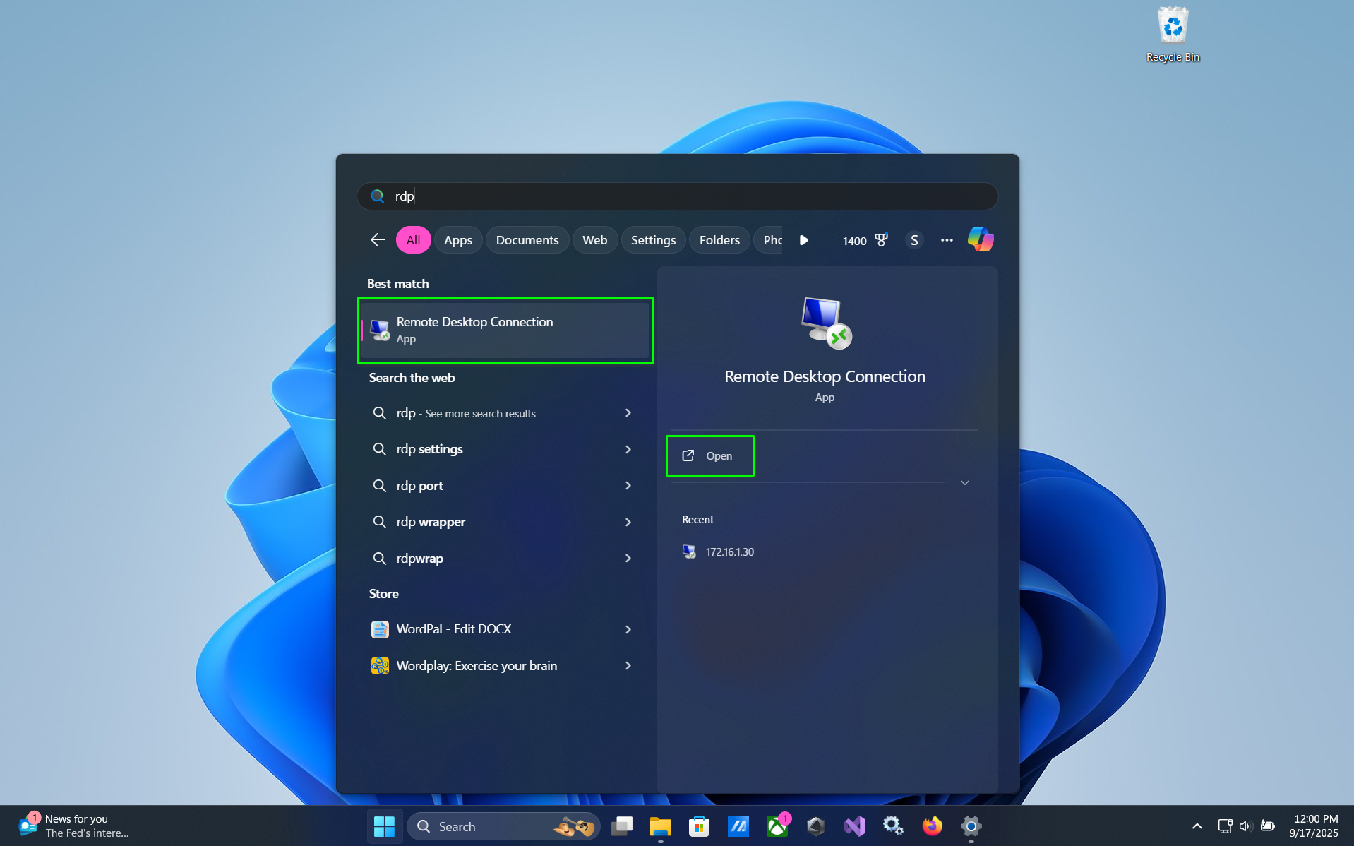 - Open the Windows App.