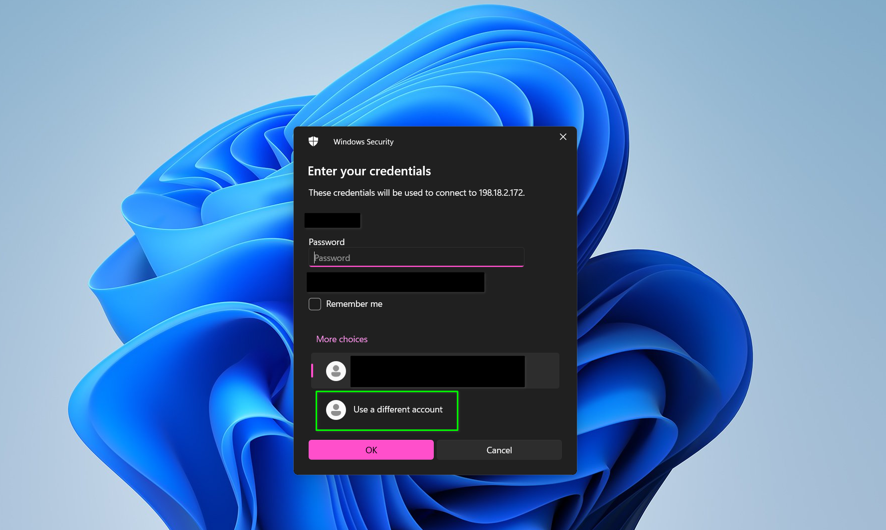 - When windows security prompts you to enter your credentials, select